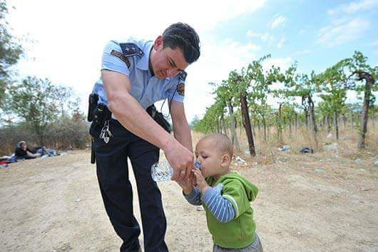 Ένας αστυνομικός ξεδιψά ένα μικρό προσφυγόπουλο...